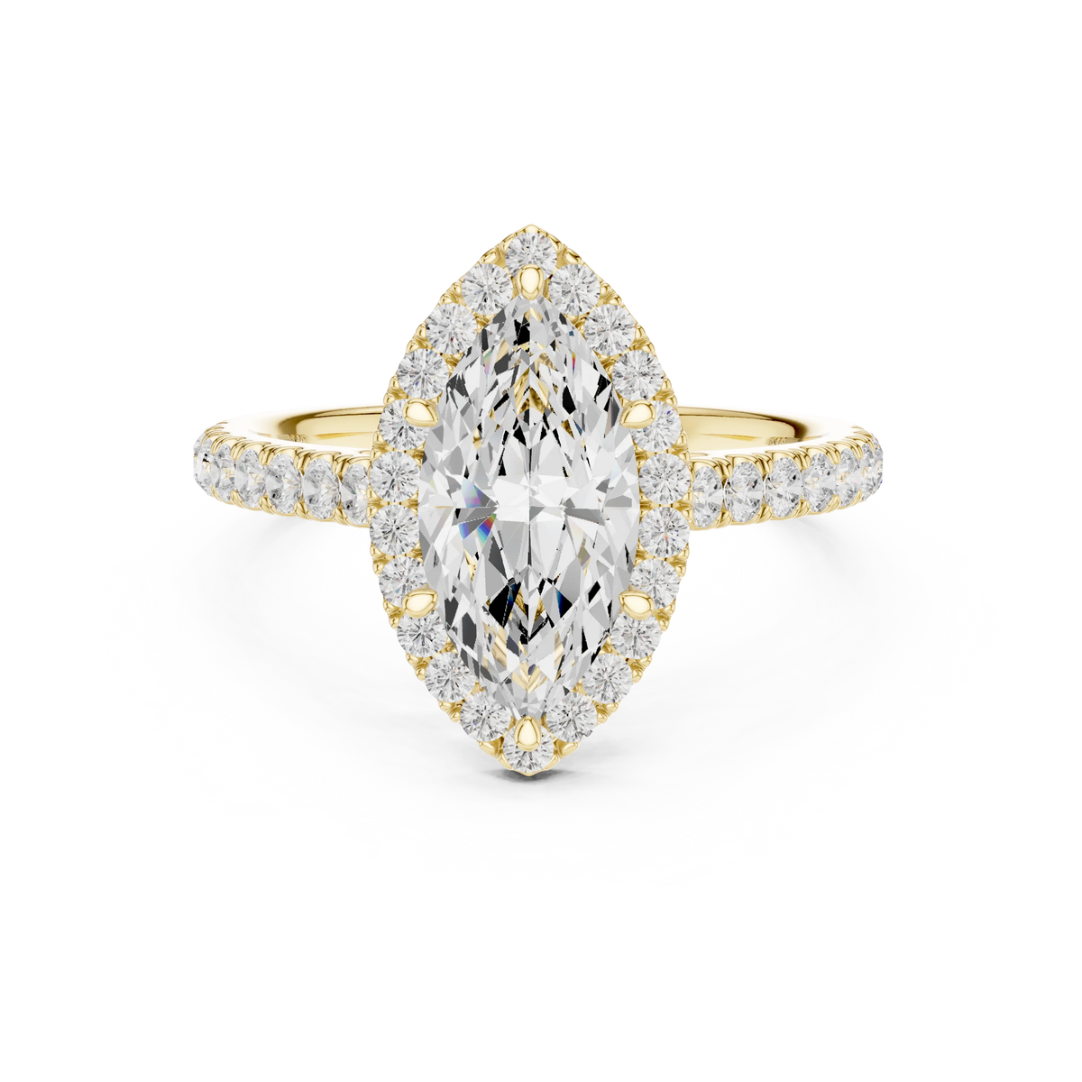 Marquise Shape Diamond Halo Engagement Ring - Yellow Gold / 10KT / 1