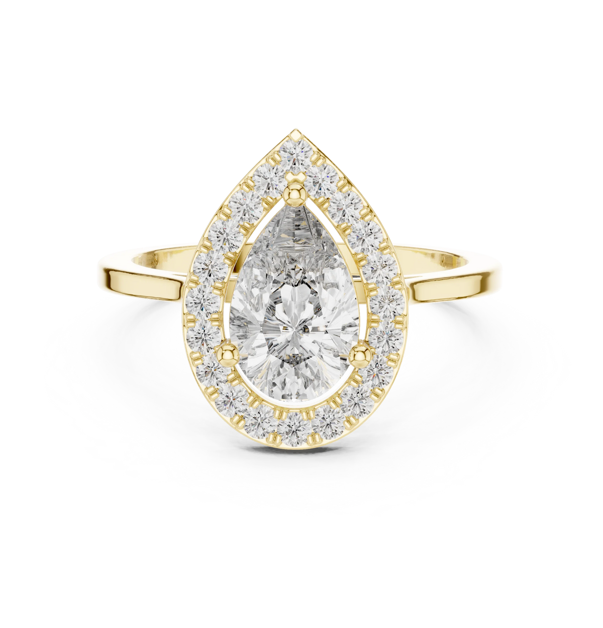 Pear Shaped Halo Diamond Engagement Ring - Yellow Gold / 10KT / 1