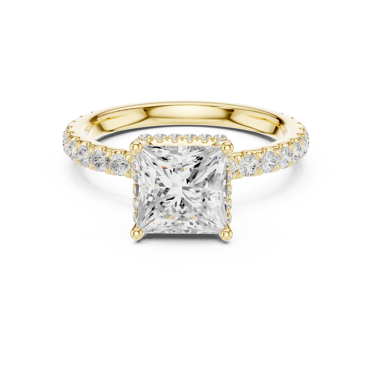 Princess Cut Diamond Double Halo Pave Engagement Ring