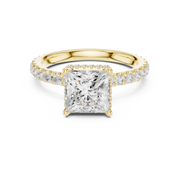 Princess Cut Diamond Double Halo Pave Engagement Ring - Yellow Gold / 10KT / 1