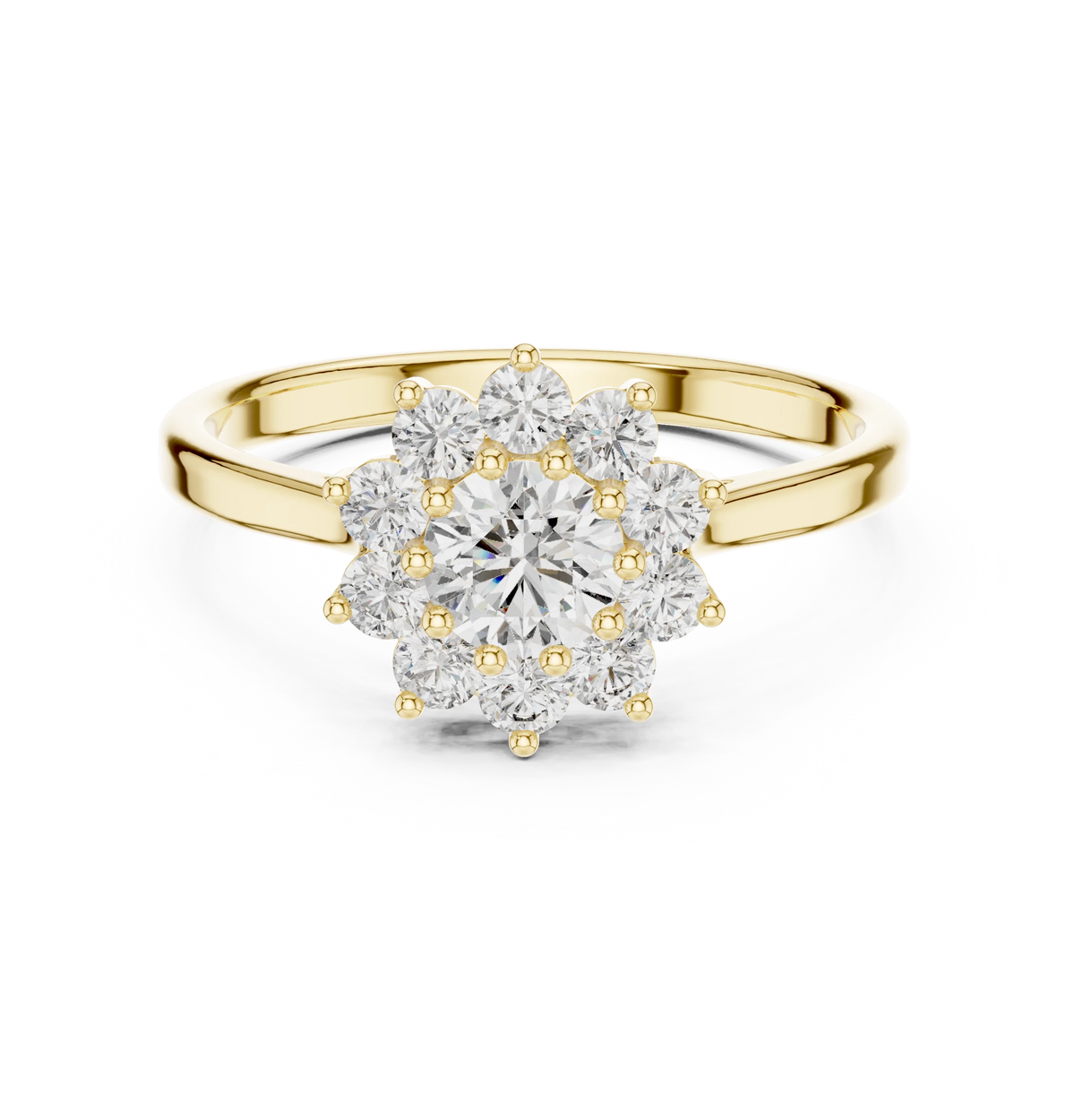 Round Diamond Floral Halo Engagement Ring - Yellow Gold / 10KT / 1
