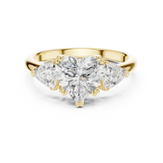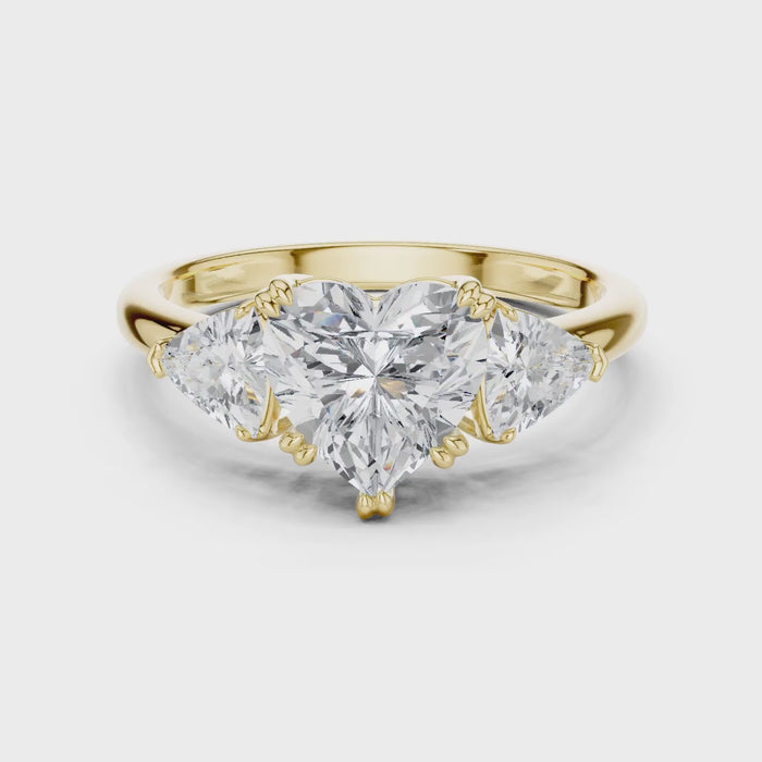 Heart Cut Diamond Three Stone Engagement Ring - Yellow Gold / 10KT / 1