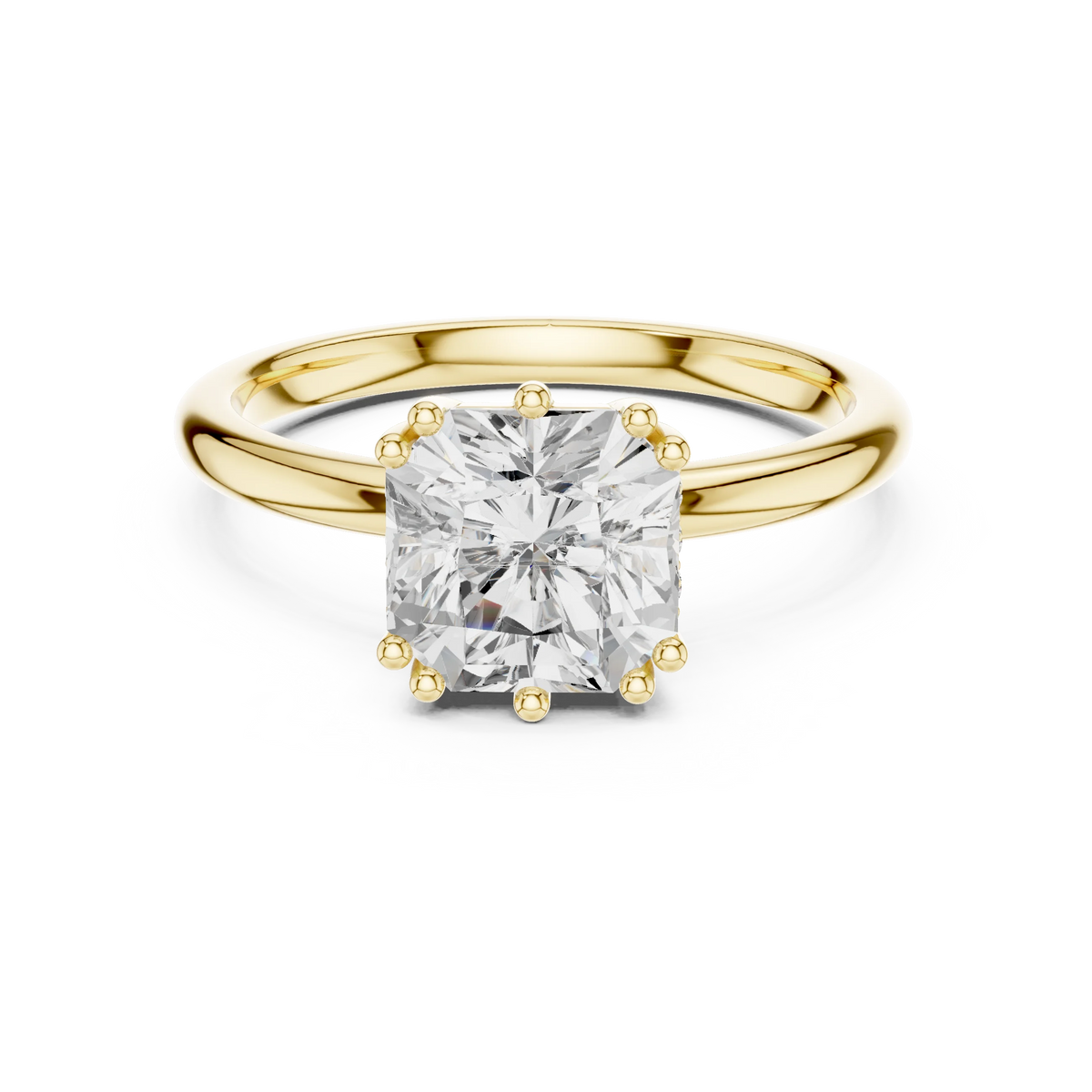 Asscher Cut Diamond Solitaire Engagement Ring with Hidden Accent Diamonds - Yellow Gold / 10KT / 1