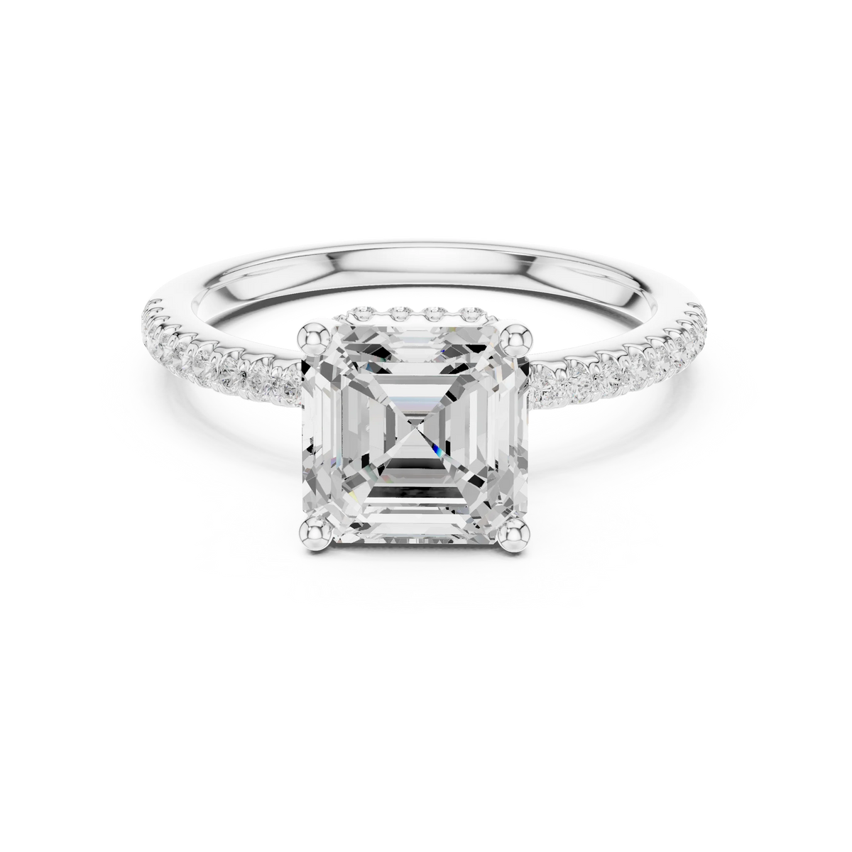 Hidden Halo Asscher Cut Diamond Engagement Ring With Pave Band