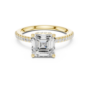 Hidden Halo Asscher Cut Diamond Engagement Ring With Pave Band - Yellow Gold / 10KT / 1