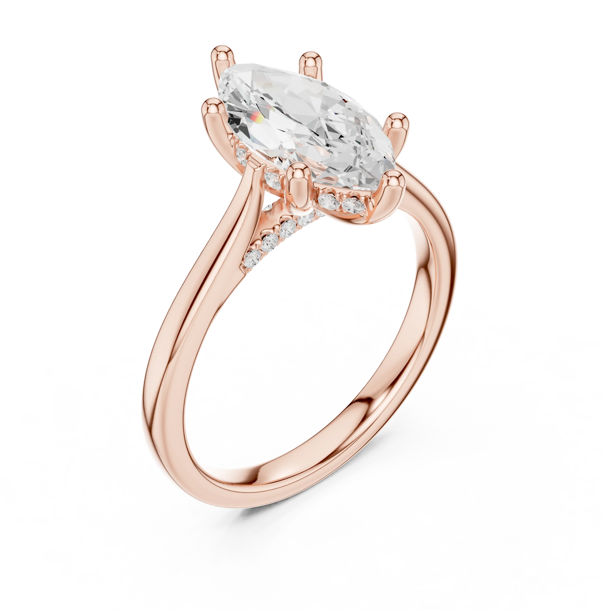 Marquise Cut Diamond Hidden Halo Engagement Ring With Cathedral Pave - Yellow Gold / 10KT / 1