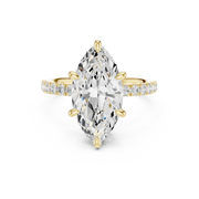 Marquise Diamond Hidden Halo Engagement Ring with Pave Band - Yellow Gold / 10KT / 1