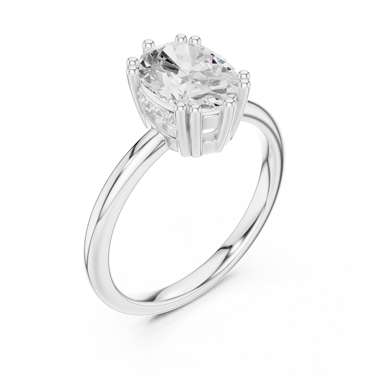 Oval Cut Diamond Solitaire Engagement Ring with Hidden Accent Diamonds - Yellow Gold / 10KT / 1