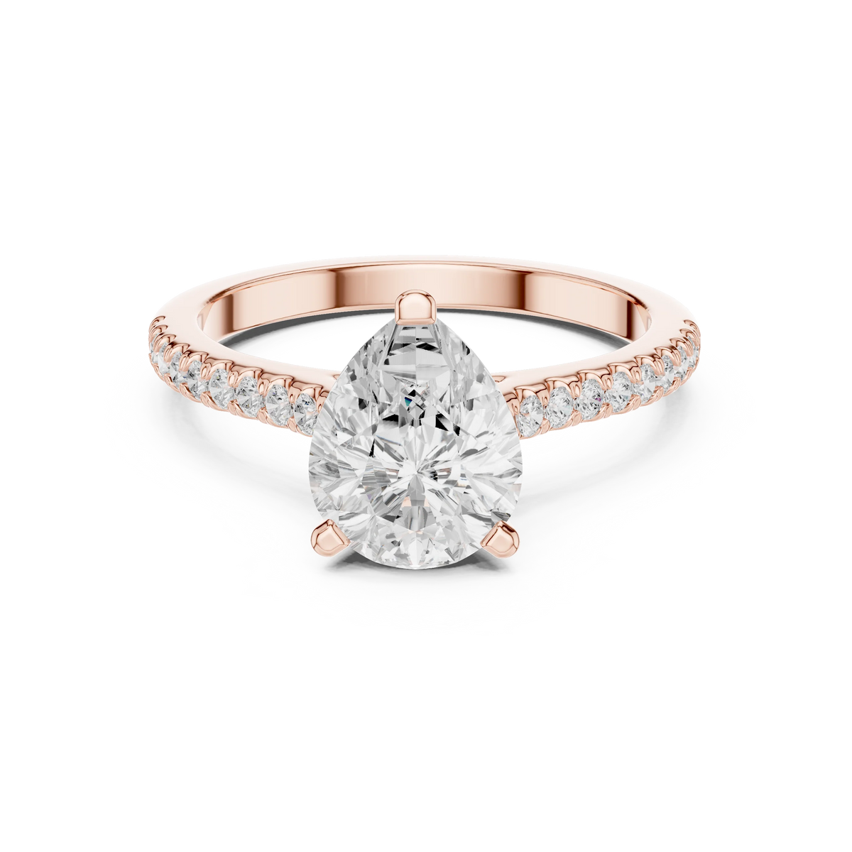 Pear-Cut Diamond Hidden Halo Engagement Ring with Pave Band
