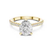 Pear-Cut Diamond Hidden Halo Engagement Ring with Pave Band - Yellow Gold / 10KT / 1