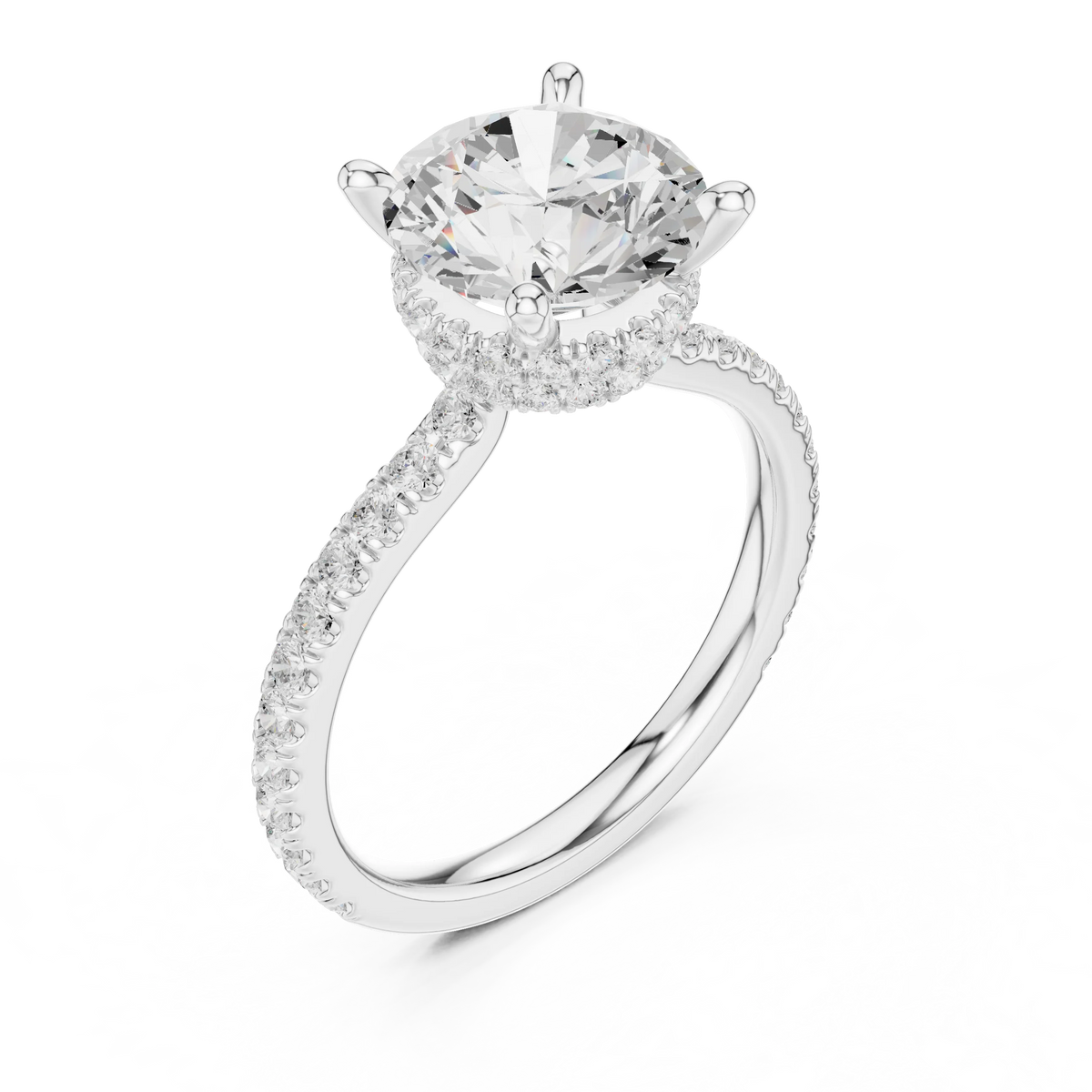Round Cut Diamond Double Hidden Halo Engagement Ring