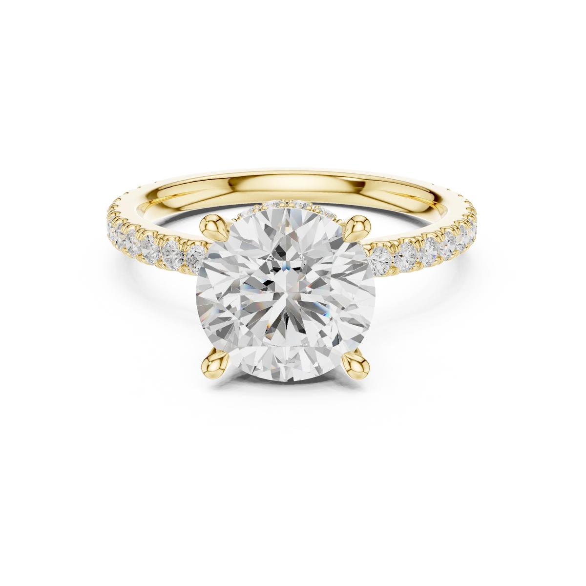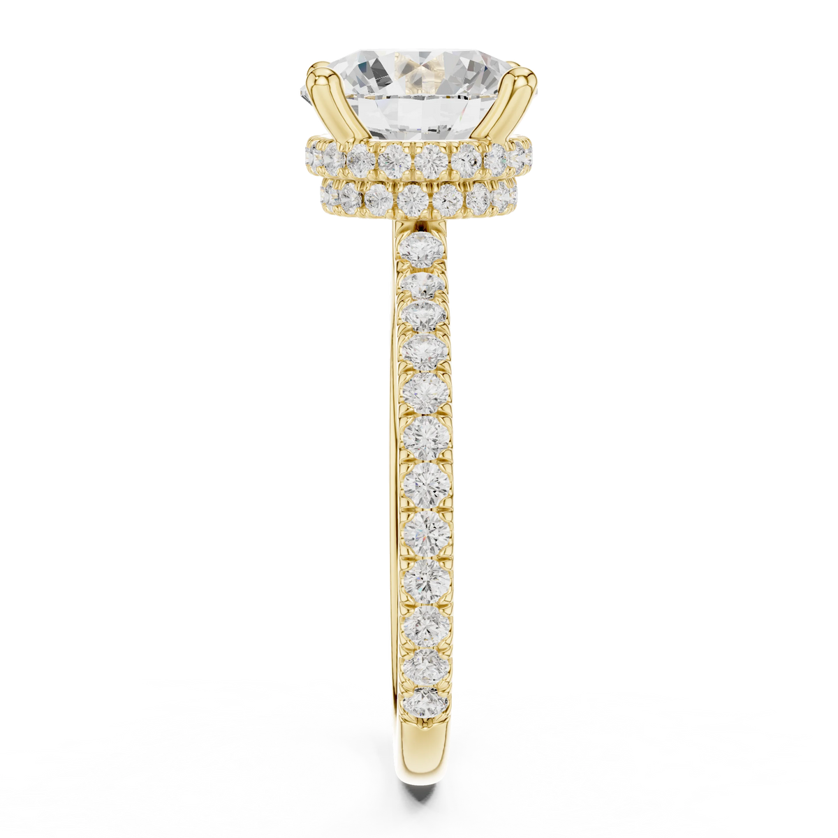 Round Cut Diamond Double Hidden Halo Engagement Ring - Yellow Gold / 10KT / 1